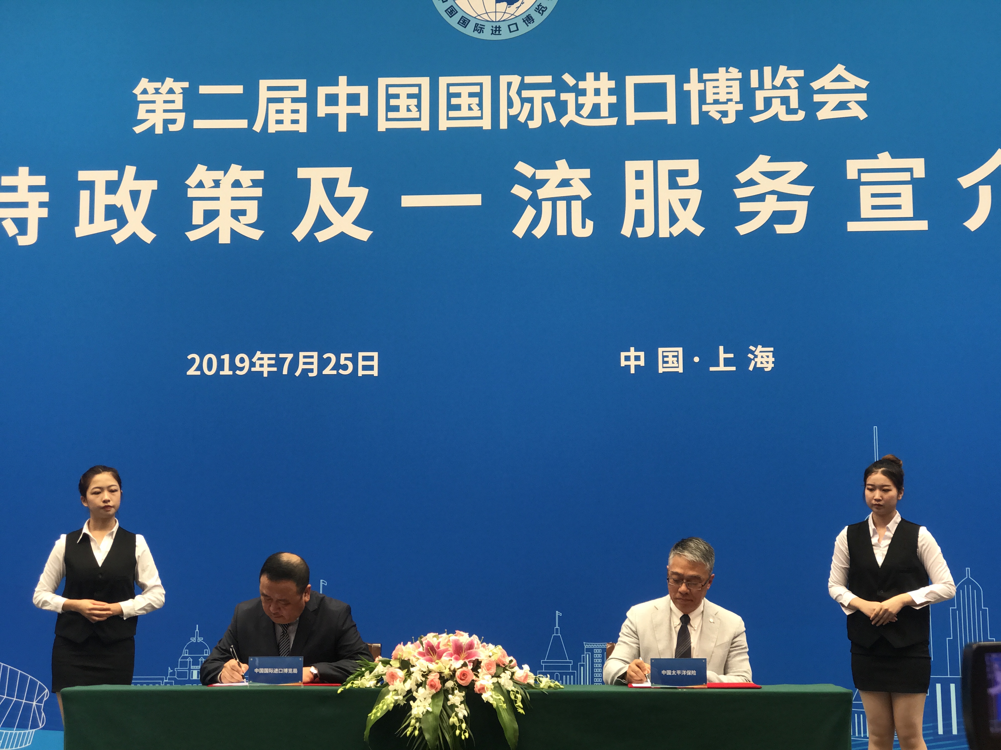 7月25日,中國太保與中國國際進口博覽局簽署合作協議,正式成為中國國際進口博覽會核心支持企業和指定保險服務商。