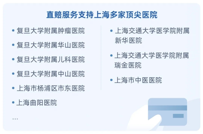藍醫保的直賠醫院拓展至28家,支持上海多家頂尖醫院,如復旦大學附屬腫瘤醫院、瑞金醫院、兒科醫院、新華醫院、華山醫院等等。